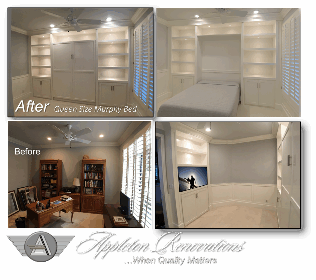 Create more room for guests, work, hobbies and everyday living with the industry’s best Murphy Beds hardware mechanisms systems incorporated into Appleton Renovations architecture designs.